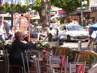 Tel-Aviv looks like it was put up in a hurry (it was), and like it has better things to do than erect fountains with angels and fish and stuff (it does). This is not a pretentious city. There is public art; it seems to address daily life.