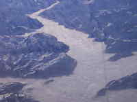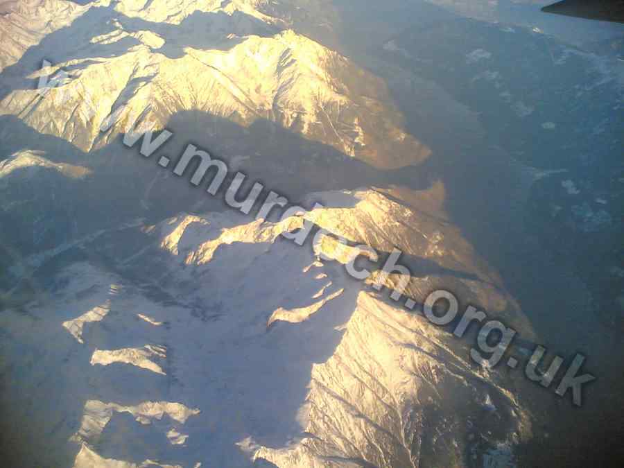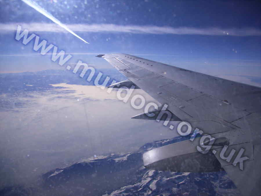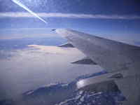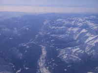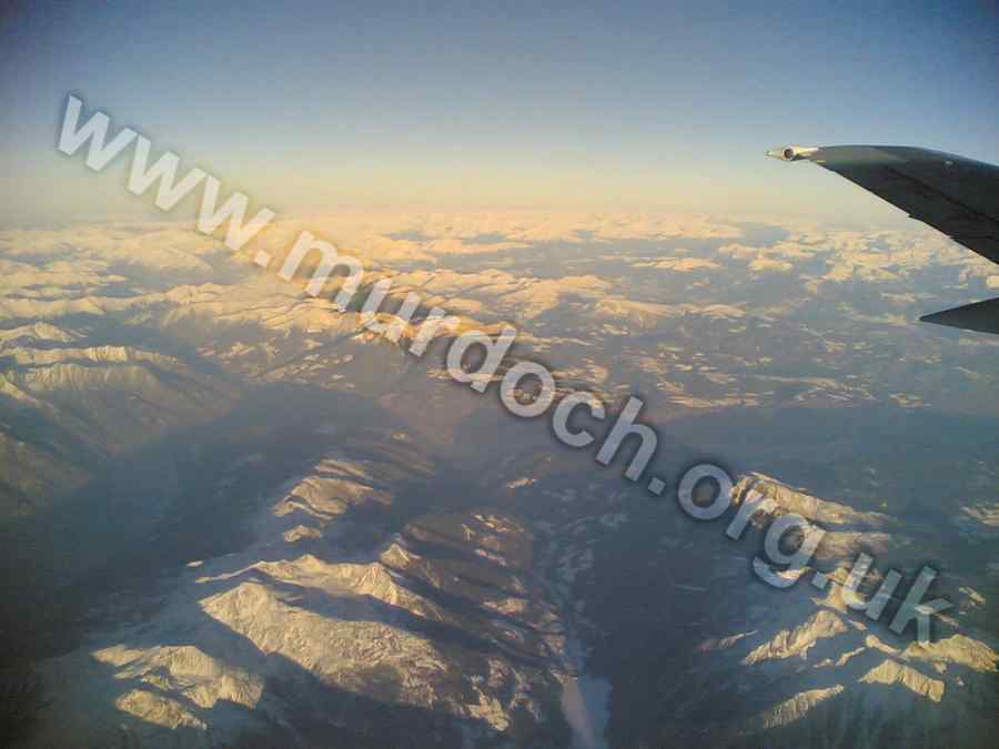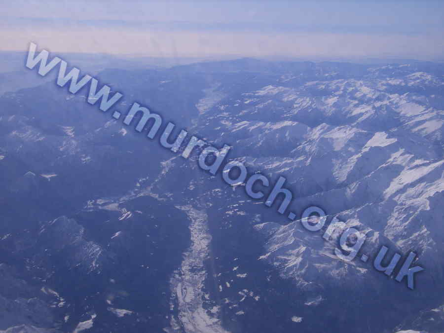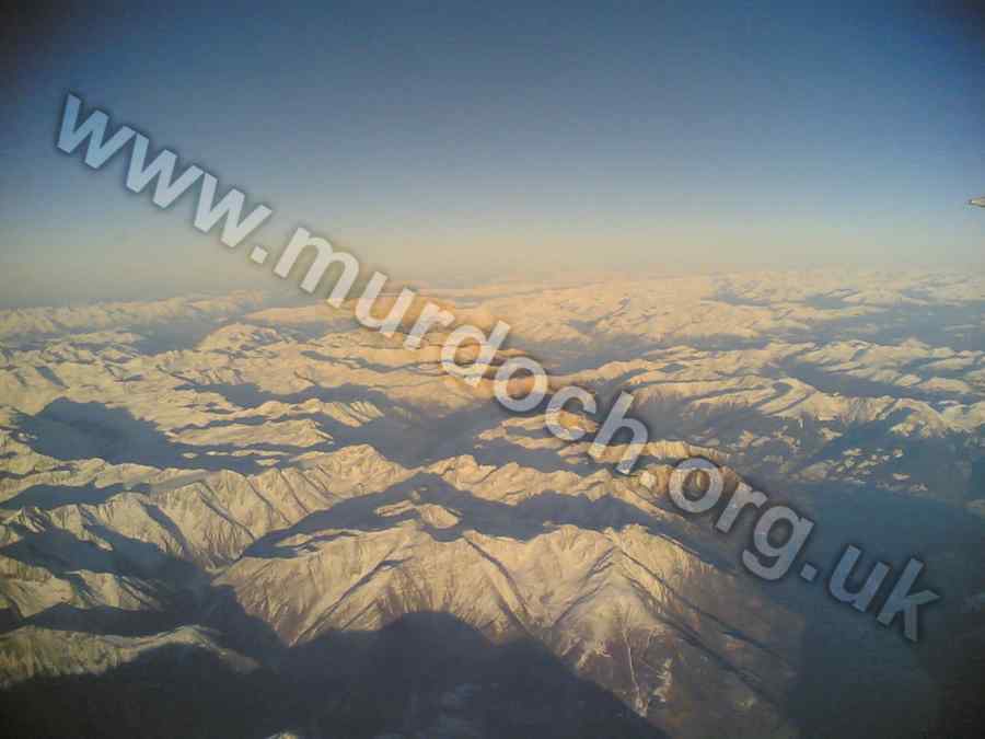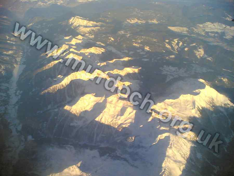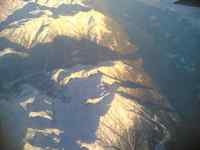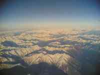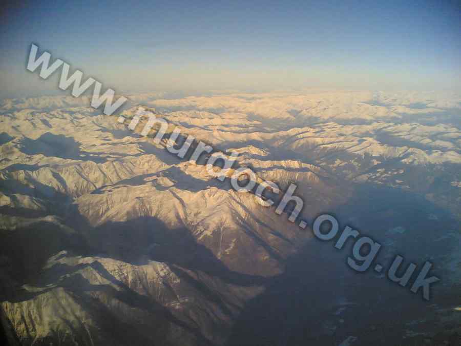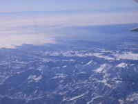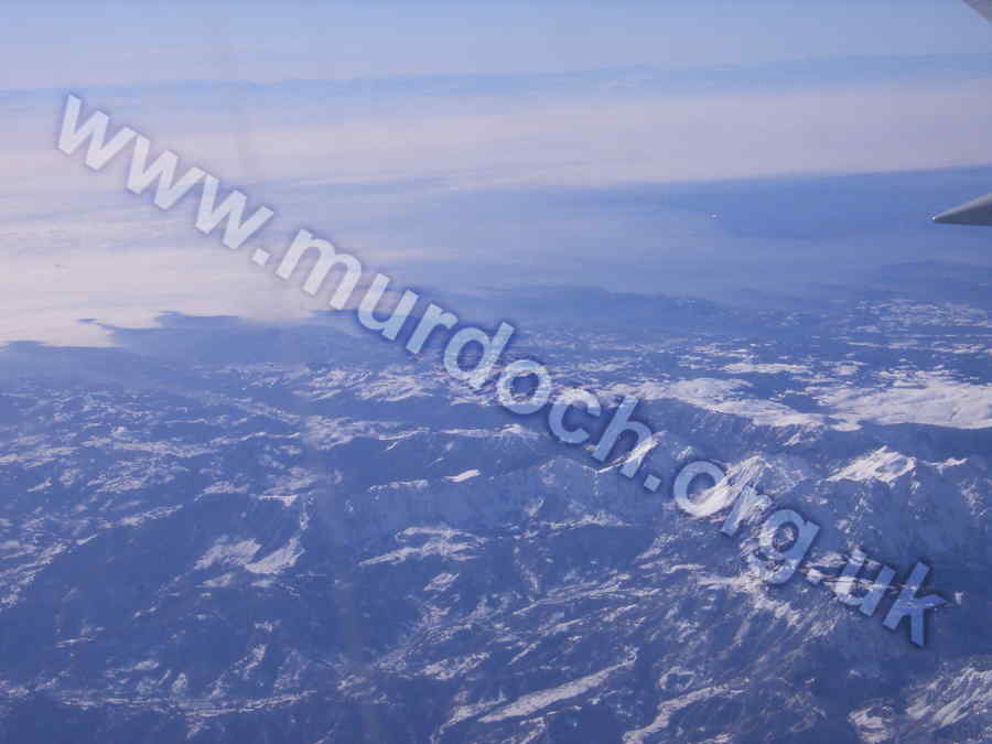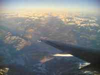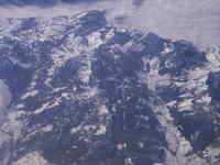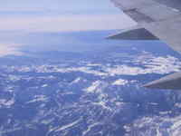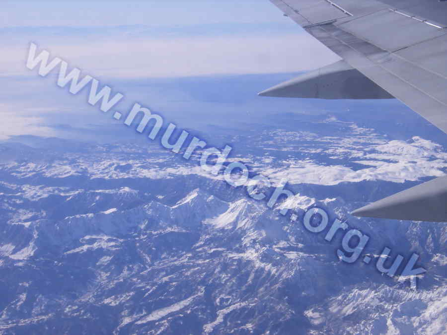The alps are a range of very high mountains. You can tell, from the effect of perspective as the mountain peaks zip past, and from the occasional scraping sound from the belly of the plane — and I'm sure I once saw a man in crampons jump on the wing at one mountain peak, and hop off at the next.